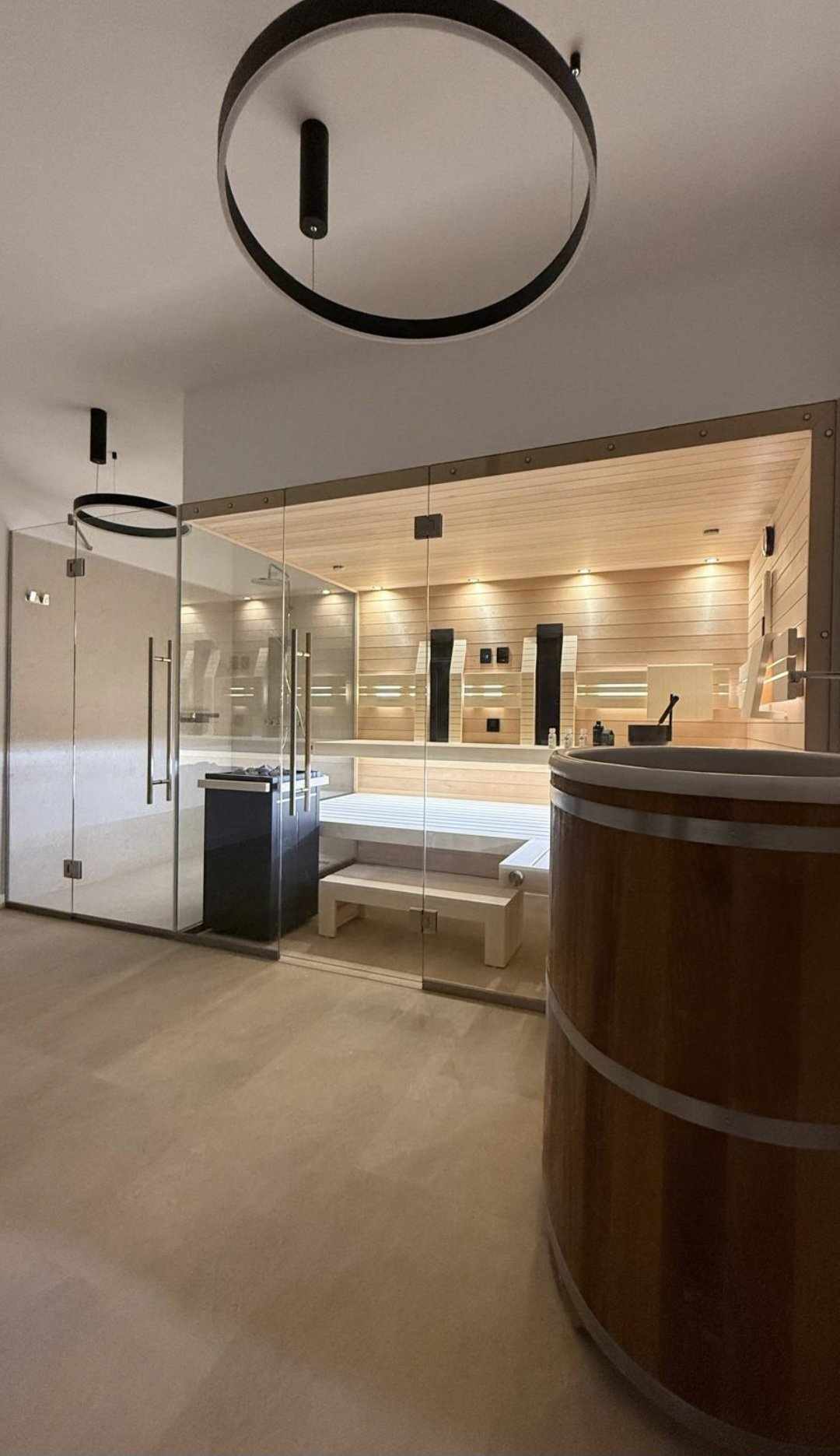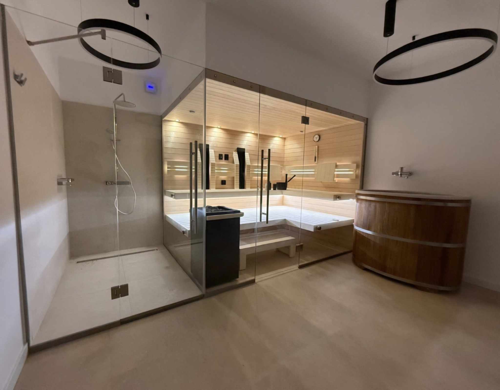 És ami egy igazi szaunaélményből nem hiányozhat: a kambala fából készült, prémium minőségű hidegvizes merülődézsa – osztrák gyártótól, a legmagasabb minőségben.